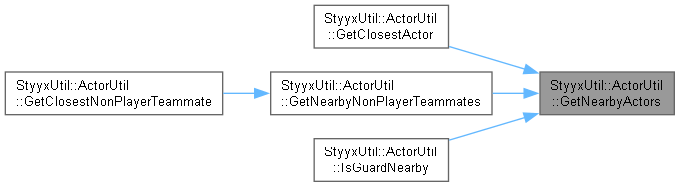 | static std::vector< RE::Actor * > | GetNearbyActors (const RE::TESObjectREFR *a_ref, const float a_radius, const bool a_ignorePlayer) |